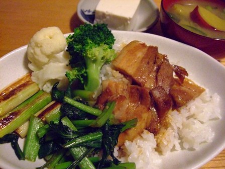 遅くなった夜ご飯に、トンテリ丼を作りました。