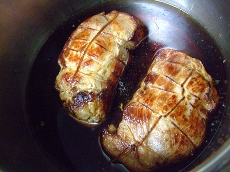 焼き目をつけてから、圧力鍋で煮豚を作りました。