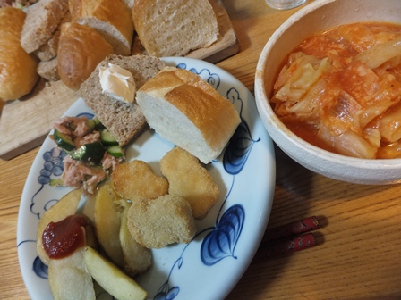 ちがさきデポーで買ってきたデニッシュハウスのパンで、夜ごぱん。
