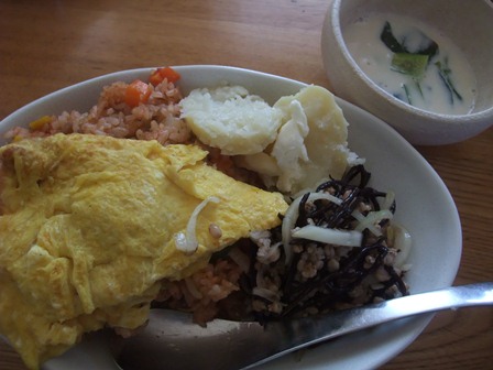 翌日のお昼は、余ったごはんで卵のっけのケチャップライス、
