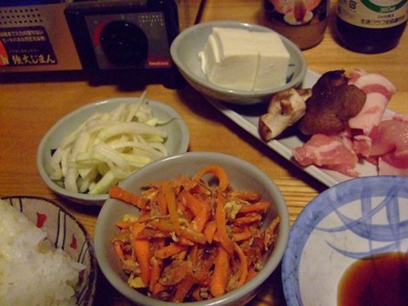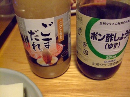 だいたいイブはふつうに家でご飯です。 ほうれん草がたくさんあるので、常夜鍋。 料理酒たっぷりのお湯がよいそうです。 豚ローススライスだったので、 枚数はありませんでしたが、おいしさはたっぷり。 ボウルに山盛りのほうれん草もなくなりました。 せん切り2種は、 人参のしりしりーと、大根なます しりしりーは、せん切りのことを言うそうです。 せん切り人参を炒めて、卵をまぶしながら、さらに炒めて、 醤油と鰹節で味付け。 作った人は、おいしさにはまって、何度も作ります。 くわしいレシピは 北海道の組合員miponさんのページ 大根なますは、カナピさんちで教わった 塩をした大根に、 素精糖大さじ2、米酢大さじ3のレシピ。 甘すぎず、すっぱすぎず、ちょうど良いお味です。 ごまだれは、瓶のラベルが変わりました。 PR |