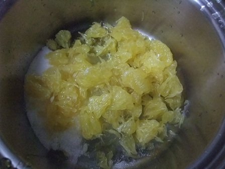 甘夏を入れて、火にかけて煮ます。