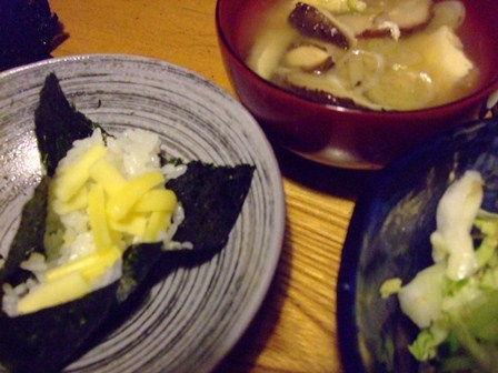 まぐろ油漬け缶と、ミックスチーズの手巻き寿司、