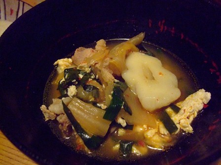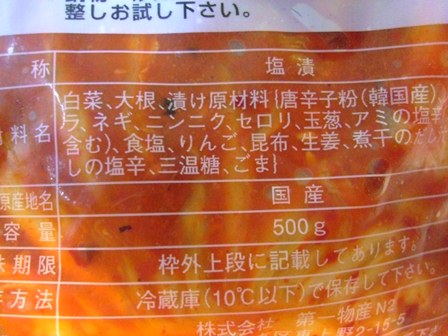 素がなくても、白菜キムチがあれば、簡単にできます。 生活クラブの白菜キムチ、 キムチのつけ汁がとてもおいしいので、だしいらずです。 アミノ酸も入っていません。 白菜キムチ、豚肉、ニラ、豆腐はくずして入れました。 トック風になるかと、ちくわぶも入れてみました。 辛いのが苦手な人は、卵を入れていました。 つけあわせは、辛くないもので 生の大根を太めに切って、ごま油と塩を振ったもの。 冬の大根が甘いです。 スライサーでせん切りにした人参は火を通してナムルに。 すりおろしにんにくを少し加えてあります。 第一物産では、いろいろなキムチを作っていて、 市販用にアミノ酸入りのものもありますが、 カクテキや、冬だけのポッサムキムチやカキキムチなど、 生活クラブ向けのものには使用していません。 ご飯のおともに、ごま油の香りのサラダ海苔 PR |