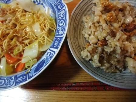 サラダは水菜の残り、レタス、トマト、新玉ねぎ。