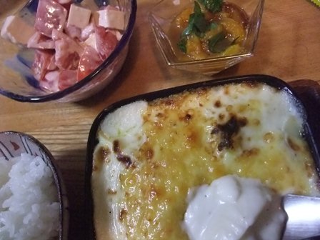 ほうれん草が2把あったので、洗ってゆでて、 たっぷりのオリーブオイルで、ブロックベーコンを刻んで、ヤマビコシメジと炒めて、 純米酢をくわえて少し煮詰めて塩こしょう。 味輝の角食パンはトーストして、角切り。 ほうれん草の上にトーストを乗せて、 上からベーコンしめじ炒めをソースにかけて、 冬のパンサラダ。 PR |