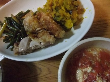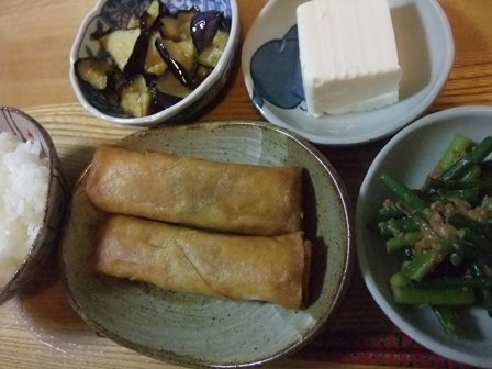 市販では中国産しか売っていないので、ずっと食べてなかったけれど、 この時期には生活クラブで国産のが注文できるので、うれしいです。 このぐるぐるを刻むのが、一番の手間かも? にんにくの芽は味噌炒めに。 鶏モモ肉をみたら無性に油淋鶏が食べたくなって、 解凍してあったので、そのまま片栗粉をふって、油に投入しました~ 長ねぎはないので、しょうがとにんにくのかけ汁だったけど、 家族もおいしいと喜んでいました。 今週届いた班のかぼちゃが、 残念なことに、みずっぽくて、まったく甘くないです。 蒸したのに中華ドレッシングをかけてみました。 3個もあるのですが、味もそっけもないので、 サラダにしても、スープにしても、食べきれないだろうから、 素揚げにでもしてみようか? 先々週のにんにくの芽も味噌炒めでした。 かたそうなときには、油で炒めてから、酒と水を入れて、 ふたをしてしばらく炒め煮にします。 なすと春巻きを揚げてから、 油をあけた中華鍋で炒めると、鍋も洗わずに次々と作れます。 去年の同じ時期にもやはりにんにくの芽を食べていました。 国産にんにくの芽の炒めもの |