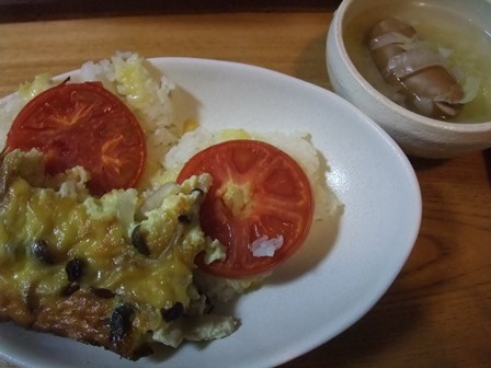 もう修理ができないので、買い換えました。 今度のは、スチームと別にウォーターオーブンもあり、 二段調理もできるようです。 ぶなしめじと玉ねぎのキッシュと一緒に 残りご飯を丸くしてあったので、 チーズとトマトを乗せて焼いて、 一度に料理できました。 フランクフルトソーセージを入れた、キャベツと玉ねぎのスープと一緒に。 |