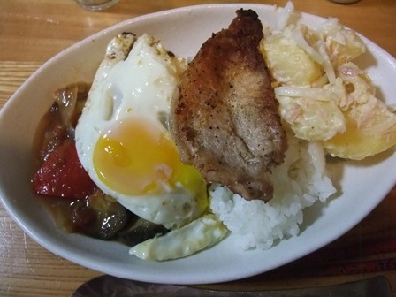 翌日は、冷たいラタトゥイユに目玉焼きを乗せて。