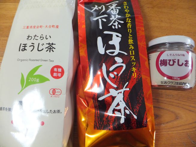 生活クラブのほうじ茶二種類を同じ容器に混ぜていれています。