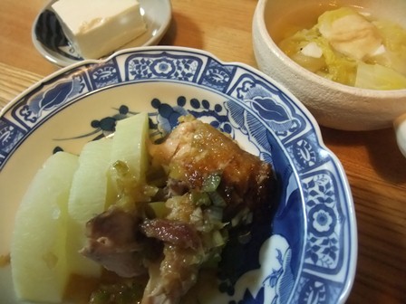 鶏肉のコンフィ デポーで協力お願い品になっていた、鶏肉を4パック1キロ買ってきて、 モモ肉と胸肉 各250g×2 塩をして一晩冷蔵庫へ。 保温鍋でなたね油を温め、肉を入れて、 また油が泡立つまで、弱めの火にかけて、 ふたをして鍋の中がしっかり温まってから、保温調理。 あとは放っておくだけなので買い物へ どうしてもぼけちゃうけどこんな感じ。 数時間、放っておいても、煮えすぎないし、 火にかければ、すぐに音がし出すほど、鍋の油は熱々でした。 ケーク・サレを焼いたので、 油から出したお肉を15分焼いたら、 焼き色はきれいでしたが、胸肉が固くなり焼きすぎでした。 翌日、フライパンで温める程度にしたら、 鶏ハムみたいな感じでできあがっていました モモ肉はオーブンで焼いてもやわらかです。 手軽でおいしい鶏ハム、 手がかかってる風なコンフィ、 鶏胸肉の簡単料理が増えました。 ケーク・サレ3種類と プレーン生地に長ねぎとじゃがいも たらこ入りの生地にれんこん バジルソース入りの生地にトマト キャベツと長ねぎとキヌアのミルクスープ |