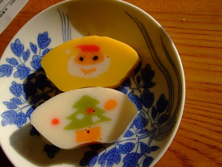 なにしろ配達は13日でしたから。 いつもは天板に直接おいていたのを 今年は 鶏肉学習会 で見たように、鶏は網に乗せ、 野菜を下に敷いたら、上が焦げそうになり、ひっくり返したところ~ つけあわせの野菜もできたので、 あとはトマトカット缶を使ったトマトスープと、塩キャベツのみ。 玉ねぎを炒めて、トマト缶を入れ、大豆ドライパックとれんこんを煮ました。 今日だけはチキン食べ放題です。 包丁で切り分けていきました。 シャンメリーもおいしいし、 氷熟仕込みのアルプスワインもおいしかったです シャンメリーはおとなが飲んでもおいしいぶどう味の炭酸です。 きれいな色ですが、着色していません。 ぶどう果汁・砂糖・酸味料と、炭酸ガスを使っているだけです。 クリスマスの時にしか出ないので、一年分、箱買いしたいという人もいます。 氷熟仕込みワインは、ぶどうを一度凍らせるそうです。 凍ってから溶け始めるのが、糖分が多いところからなので、 ふつうに作るワインより甘くなります。 ジュースより甘いワインです。 長野の生産者 アルプスワインさんとの交流会 でお聞きしました。 食べ忘れたジングルベルかまぼこ、 こちらもクリスマスだけのお楽しみ。 着色料は、みんな食べられるもので、 かぼちゃやほうれんそうを使っています。 こんなにかわいいのに、お味もとってもおいしくて、 小さい子にも安心です。 PR |
