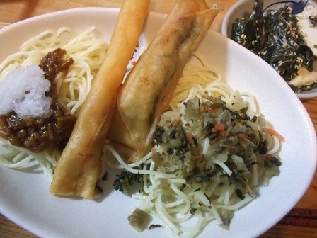 春巻きの皮で包んだのも、火を入れずにできるもの。