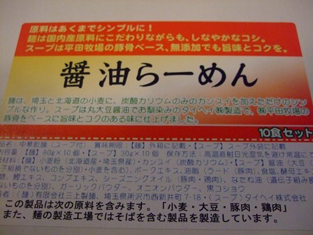 埼玉独自品なのですが、乾麺の醤油ラーメンもおいしいです~
