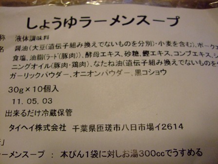 10食分、箱に入っています。 麺は、まっすぐで、見た目はそうめんのようです。 麺は3分ゆでて、液体スープがついているので丼にスープを作ります。 麺を油で揚げてないから、さっぱりしてて、 醤油の生産者のタイヘイさんのスープがものすごくおいしいので、 たべおわったとたんにおかわりしたくなります・・・ |