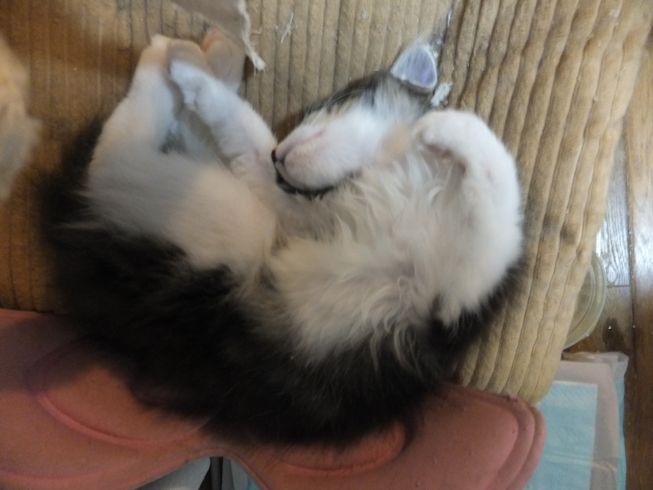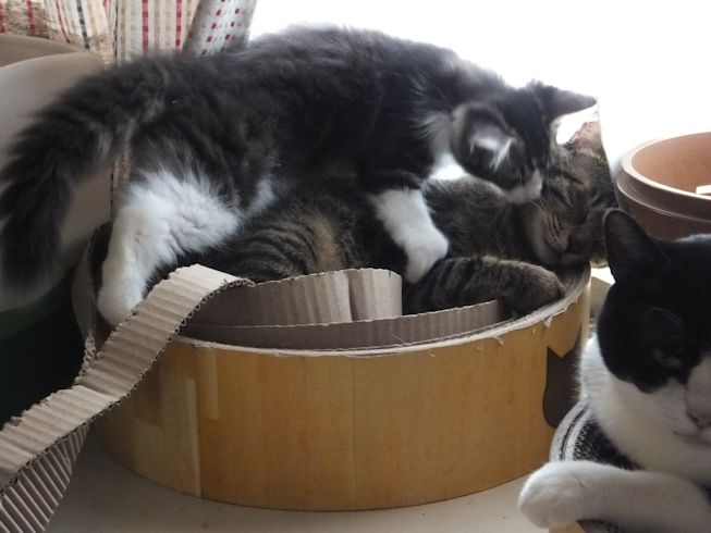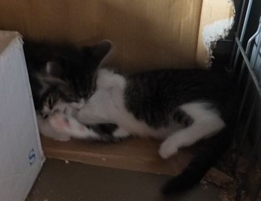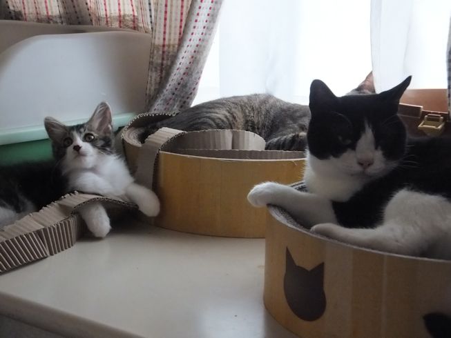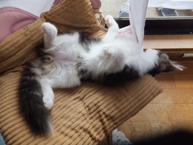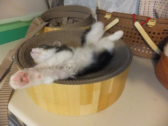 セイラはよく箱の中でへそ天してます。