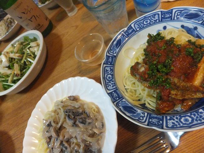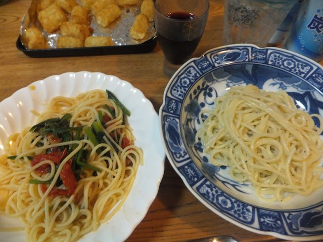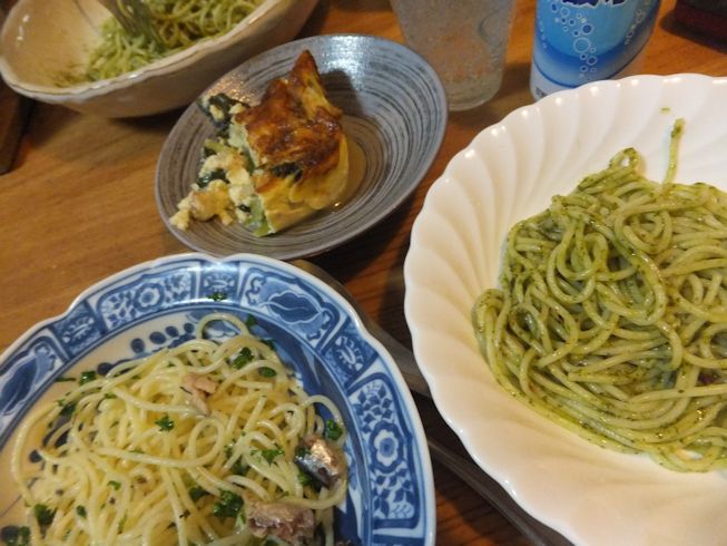 小松菜のキッシュと、スパゲティ。