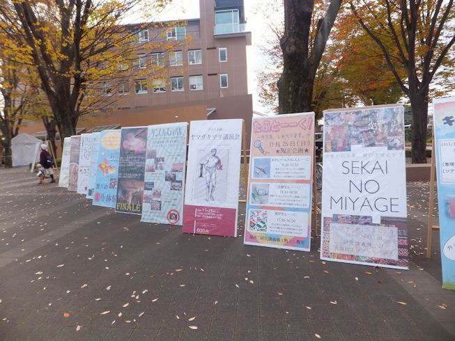 まず向かったのは、ポルトガル。 なくなる前にエッグタルト。 リングイッサとパステウ(揚げ餃子、人参もみじん切りで入ってました。) 近隣が煙もうもうになるリングイッサ。 スペイン、並んでます。 上から、まんまるのコロッケ・パパ レジェーナ、 馬蹄形のチュロス、シナモンとシュガー、 揚げ餃子エンパナーダ、ポルトガルよりスパイシーでした、 コロナビール、スパニッシュオムレツ、サングリア。 にんにく香るパン入りスープ、ソパ デ アホ は品切れ。 コロッケはトマト味のひき肉が真ん中に入っています。 カンボジア 後ろにはこれから調理する刻んだ野菜の袋詰め。 カンボジアのアンコールビール、 ソムローカリー(甘くてピリピリ辛いさつまいも入りのココナツカレー、フランスパン付き) モアンチャー クニャイ(もやしと同じ太さの根ショウガがたくさん入った炒めもの) インド おにぎりくらい大きいサモサ、 ラッドゥー (チャナ豆の粉を油でかためたもの、ショートブレッドみたいにほろほろ、アーモンドとピスタチオ入り) ラムチャイ、チャナカレー。 チキンカレーとタンドリーチキンは品切れ。 サモサは食べ応え十分。 ポーランド 料理をもらう番号札も、お店によっていろいろ。 鍵をつけるプラスチック製とか、厚紙に紙を張ったもの、 どこもぬれたりしても大丈夫なように、 ラップをまいたり、ビニールテープが張ってあります。 ポーランドはこんなかわいい手作り。 これは前食べて、かなり大きかったので、今回はパス。 ナレンニキ、ベリージャム入り(クレープ) プラツキ(じゃがいもの薄焼き) ジュレック(ライ麦入りのスープ) お腹もいっぱいになったので、 ごみを捨てて、お笑いサークル・クスブルを見に行きました。 真ん中が吹き抜けで、教室がどちらにあるかわかりませんが、 階段を見ながら行くと、たどり着けます。 毎年展示をしている、学生NGO ALPHA。 フィリピンの子どもたちの支援をしています。 子ども達でにぎわっていた、ボードゲーム研究会。 階段のチラシを眺めながら、 外語祭が自森の学園祭に似ているのか、 自森が大学っぽいのか~? SEKAI NO MIYAGE 外語生と卒業生からの、世界のみやげの寄付品を売っていました。 受付や販売担当の学生たち。 にぎわっています。 食べる続き、チェコ 肉と野菜の煮込み、グラーシュ、玉ねぎのすりおろしたっぷり、 ドイツと違って、かたまり肉が入っています。 細長いうどんのようなものが入っていたのは、ゆでパンでした。 フランボラーク(じゃがいもと玉ねぎ入り薄焼き) ペルシア 番号札には偉人が。 ポレシュト、薄焼きナン付。鶏肉となすの入ったトマトスープ、 ソーハーン(ナッツの入ったヌガー) カップもかわいい。 ソーハーンに入っていた台紙にも一口メモが。 ラオス ナムワーン(コーンとタピオカ入りココナツ汁粉) ビーンカイ(手羽先の焼いたの) ライス付きラープ(パクチーたっぷりの鶏ひき肉炒め) もう入らないと言っていたけれど、 マッサマンカレーを食べていないことに気付き、 タイへ アラビアのバスブーサ(セモリナ粉を使ったシロップかけケーキ) タイのマッサマンカレー、甘くて少し酸味があります。 最後にビールを買った人。 ごめんねモンゴル~ ウルドゥー(パキスタン・北インド)で、サモサなら入る。 食べた中で、一番カレー味のサモサでした。 同じようなメニューでも食べ比べてみると、みんな味が違います。 ごめんね、中央アジア、マレーシア。 アルパス20円、(アルコールパスポート) わたしが飲んだのは、サングリアとラムチャイでした。 咳の季節じゃなければ、もう少し飲むんだけどなあ。 また来年。 外語祭のホームページがあります。 → 外語祭 料理店 PR |