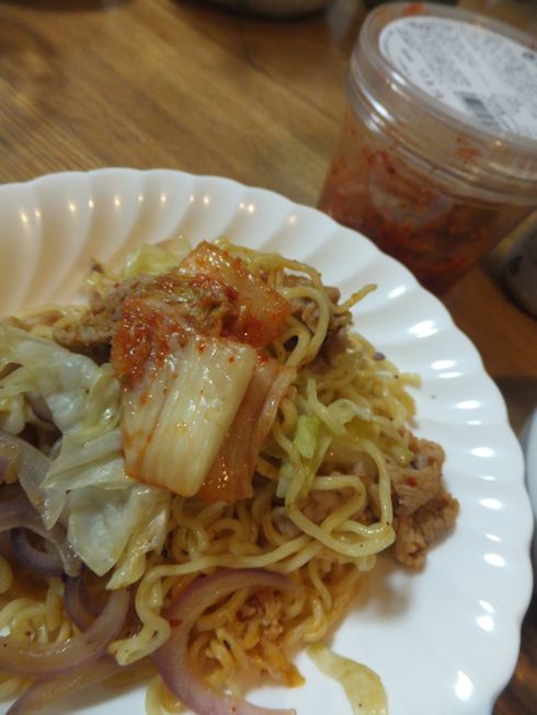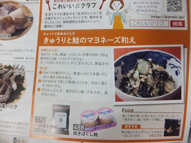 カタログに、これいいクラブに投稿したレシピが載っていました。 きゅうりと鮭のマヨネーズあえカタログは、 キュウリは塩もみして水出しし、わかめは熱湯にくぐらせる、 とか料理本みたいに手直しされていましたが、 5分以内じゃ難しくなるのと、 わかめが水を吸うので、 きゅうりは塩もみしないでマヨネーズで和えたほうが、 水気があって食べやすかったりするのでした。 わかめときゅうりがあるうちに、うちも作らなくては、 と作りましたが、見た目が… 甘口キムチをやきそばにも入れて、 上にも乗せました。 パクチーペーストは、生春巻きを作った時のもの。 これは、素朴さんにお願いして これいいクラブに載せてもらったレシピで、 パクチー好きには絶品なのでした。 パクチーペースト