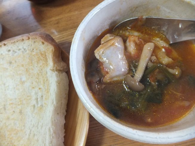 食べてくるかもと言ってた人も食べてないと帰ってきて、 夜ごはん、二人かもと思っていたら、しっかり4人分必要で、 ご飯だけは、しっかり5合あるときに。 圧力鍋に、鶏もも肉凍ったままゴロンゴロンと入れ、 近くにあった、新玉ねぎ1個とぶなしめじ、 コーミトマトカット缶2缶と、水を少し入れて 圧力鍋にかけて15分加熱。 シューシュー圧を抜いて、ふたをあけたら、 鶏肉をナイフで一口大に切り、 刻んだほうれん草を加えてひと煮たち。 クスクスみたいに、ごはんにかけて食べました。 おいしいけどこれは何?と聞かれ、 初めて作ったけど、鶏のトマト煮の一種と答えました。 切らずに加熱した鶏肉がおいしいのと、 最後に入れたほうれん草がいい味です。 これはまた作ろう。 つけあわせは、レタスを手でわったところに、 しょうゆとみりんと刻みのりをかけたもの。 北海道のmiponさんのレシピは30分漬けるけど、 いつも食べる直前に思い出して、ほとんどかけるだけでもおいしいです。 レタスの醤油漬け 写真は翌日、パンと一緒に。 |